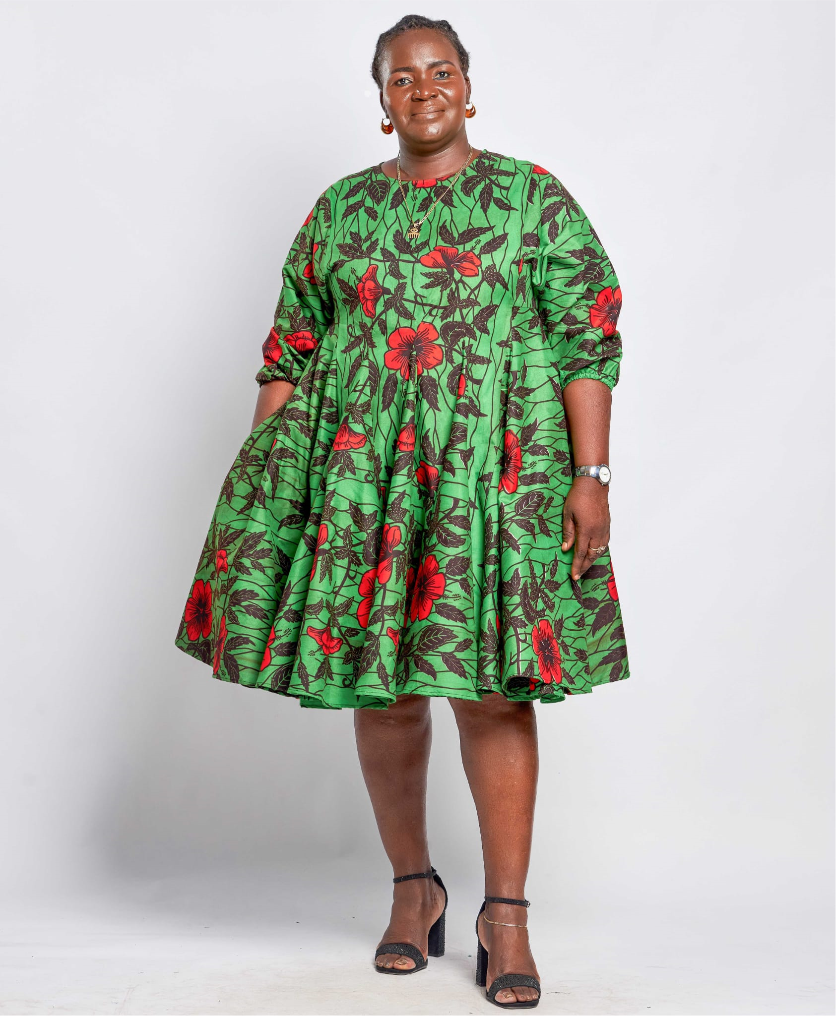 Our Maxi Balloon Dress offers exceptional comfort with its spacious, short design that’s both easy to wear and care for. Ideal for various occasions such as parties, corporate events, happy hours, and church gatherings, it is lightweight and retains its shape even when wet. Key Features: two inner side pockets, belt Style: Smart Casual Print / Pattern:Ankara Fit: Regular Length: Mid length **Material:**Pure Cotton