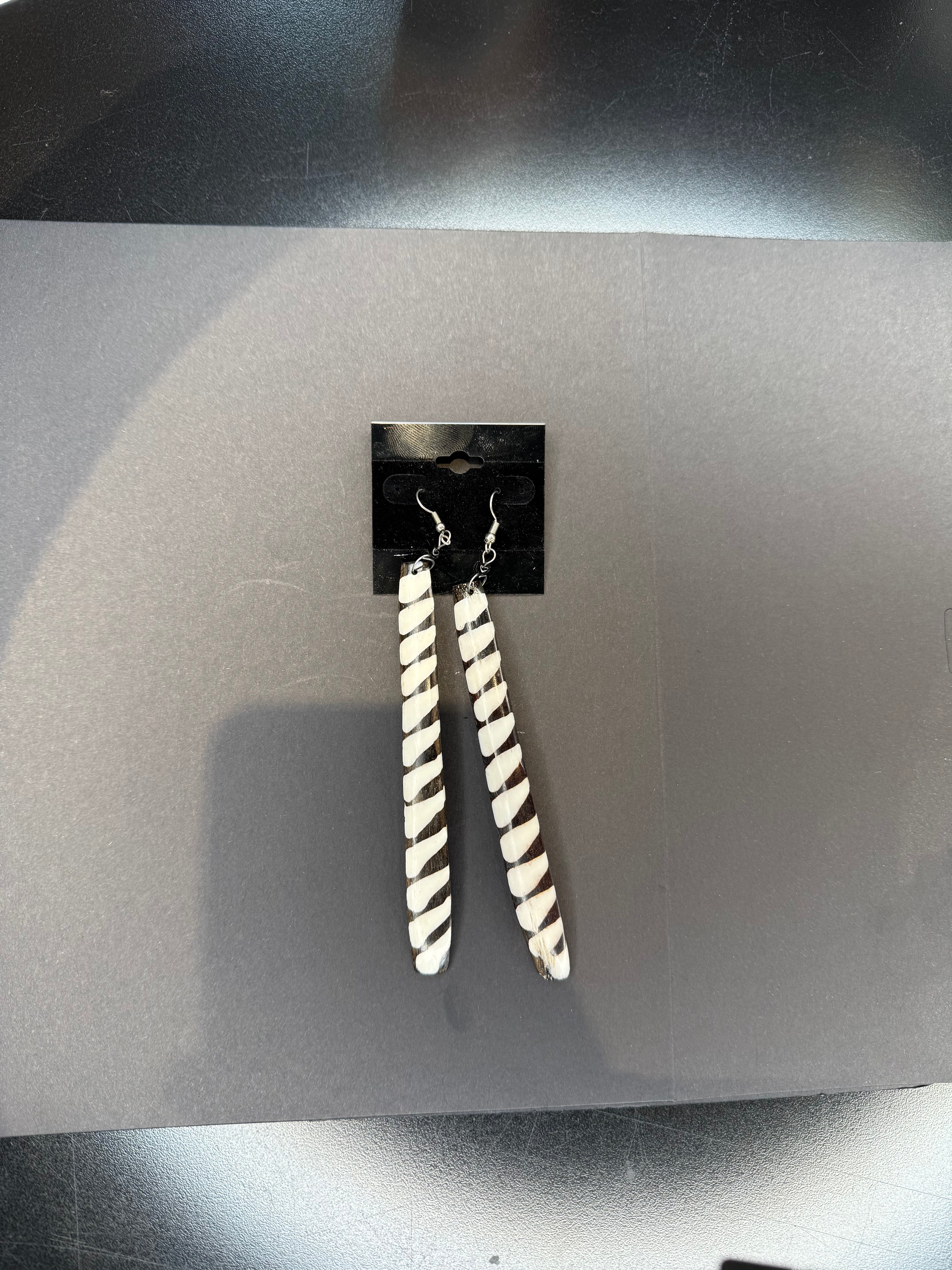 Make a bold statement with these dramatic Long Zebra Print Dangle Earrings. Each earring features an elongated, tapered charm with a striking black and white zebra pattern, giving it a sleek and exotic look. The unique shape and vibrant print ensure that these earrings will stand out and catch the light with every movement. Suspended from simple silver-toned hooks, they are surprisingly lightweight and comfortable for their size. Perfect for adding a touch of exclusive, wild style to any outfit, these earrings are a must-have accessory for those who love to express their personality through their jewelry.