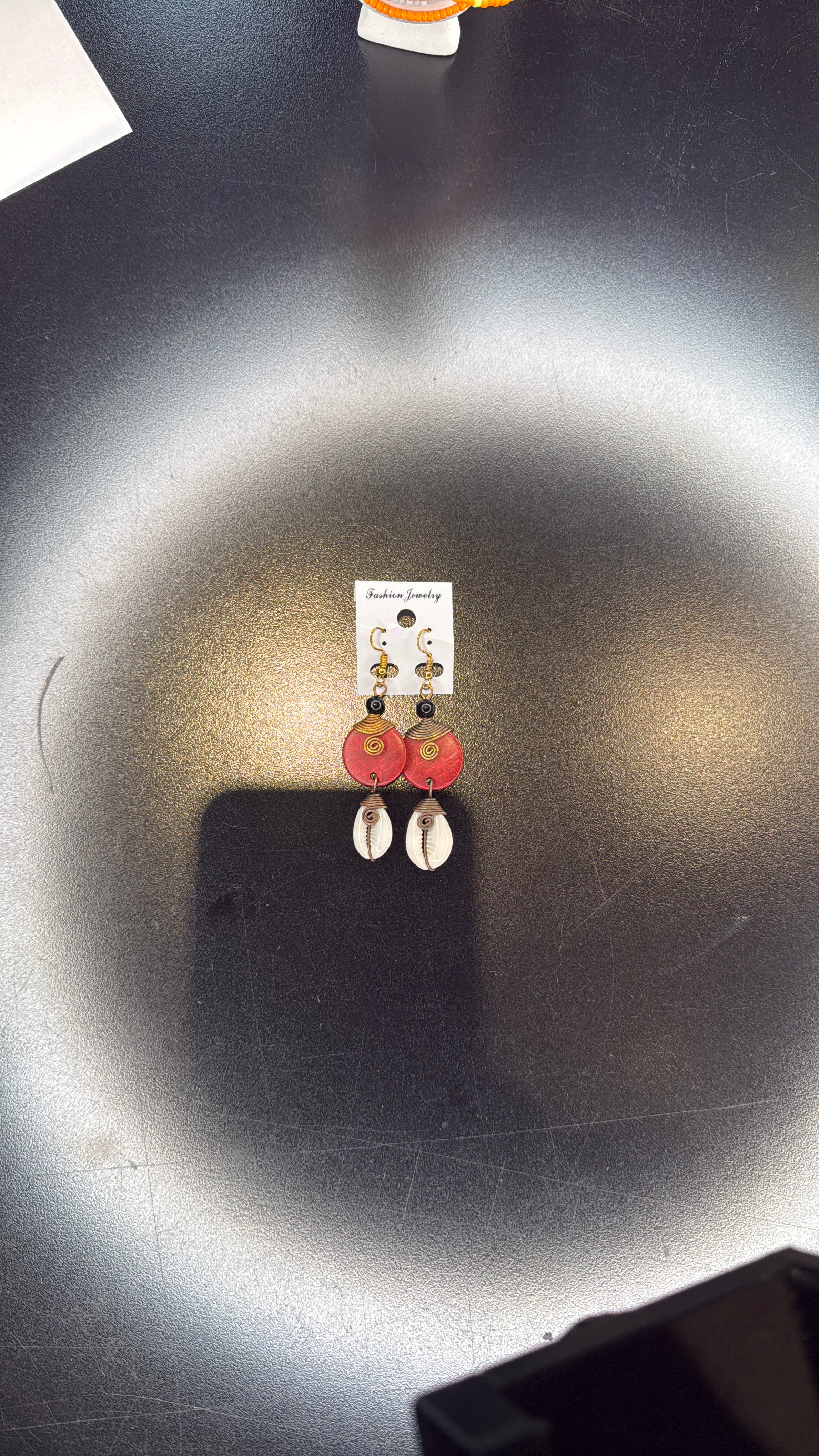 Infuse your style with a mix of bohemian and coastal charm with these unique Pink Swirl Disc and Cowrie Shell Earrings. Each earring features a circular charm with a vibrant pink and white swirl pattern, creating an artistic and eye-catching design. A small, polished cowrie shell hangs below, adding a touch of natural beauty and symbolic meaning. The charms are connected by a small gold-toned loop, and the earring is suspended from a simple gold-toned hook. These lightweight earrings are perfect for adding a pop of color and exclusive, earthy elegance to any outfit.